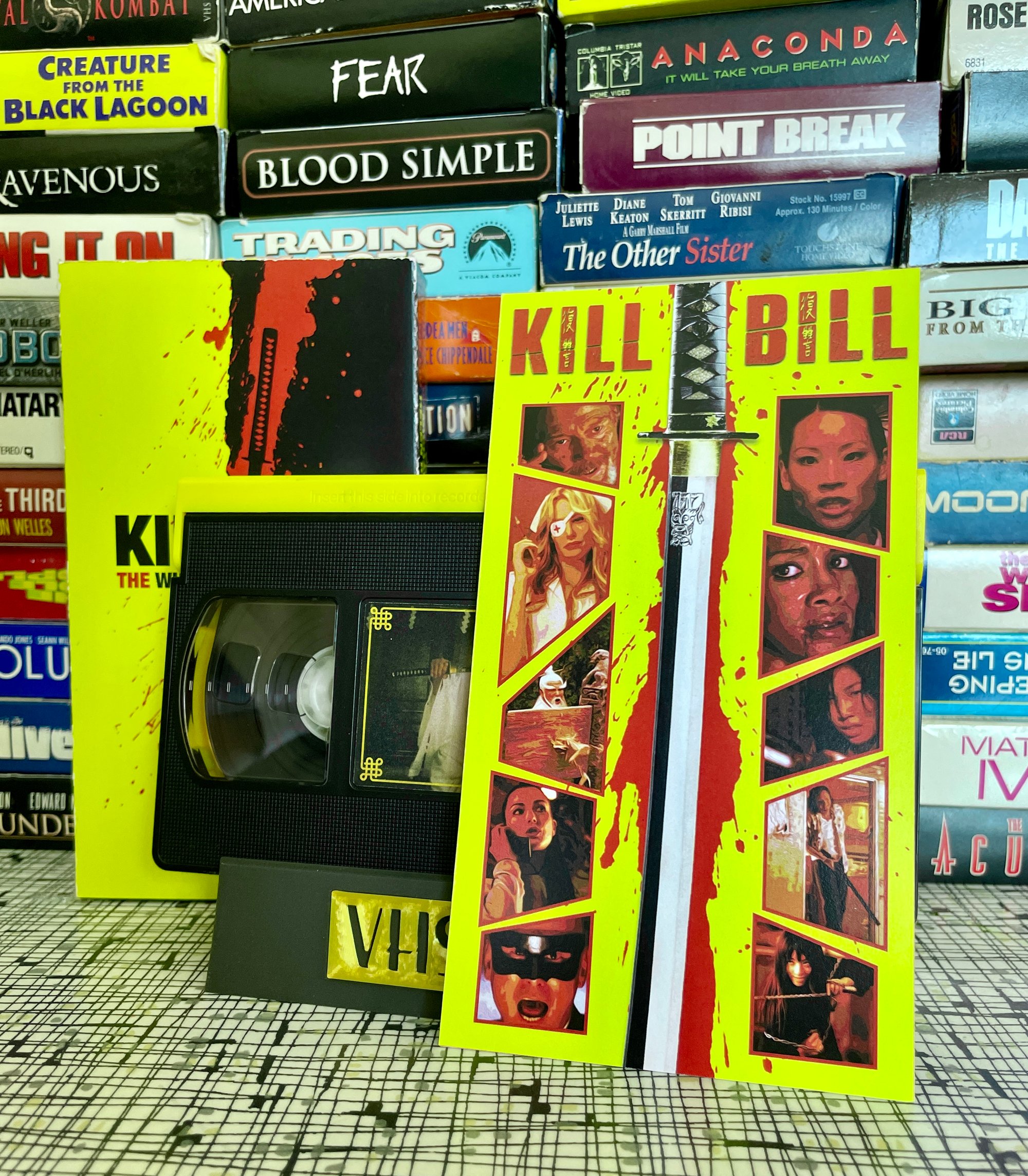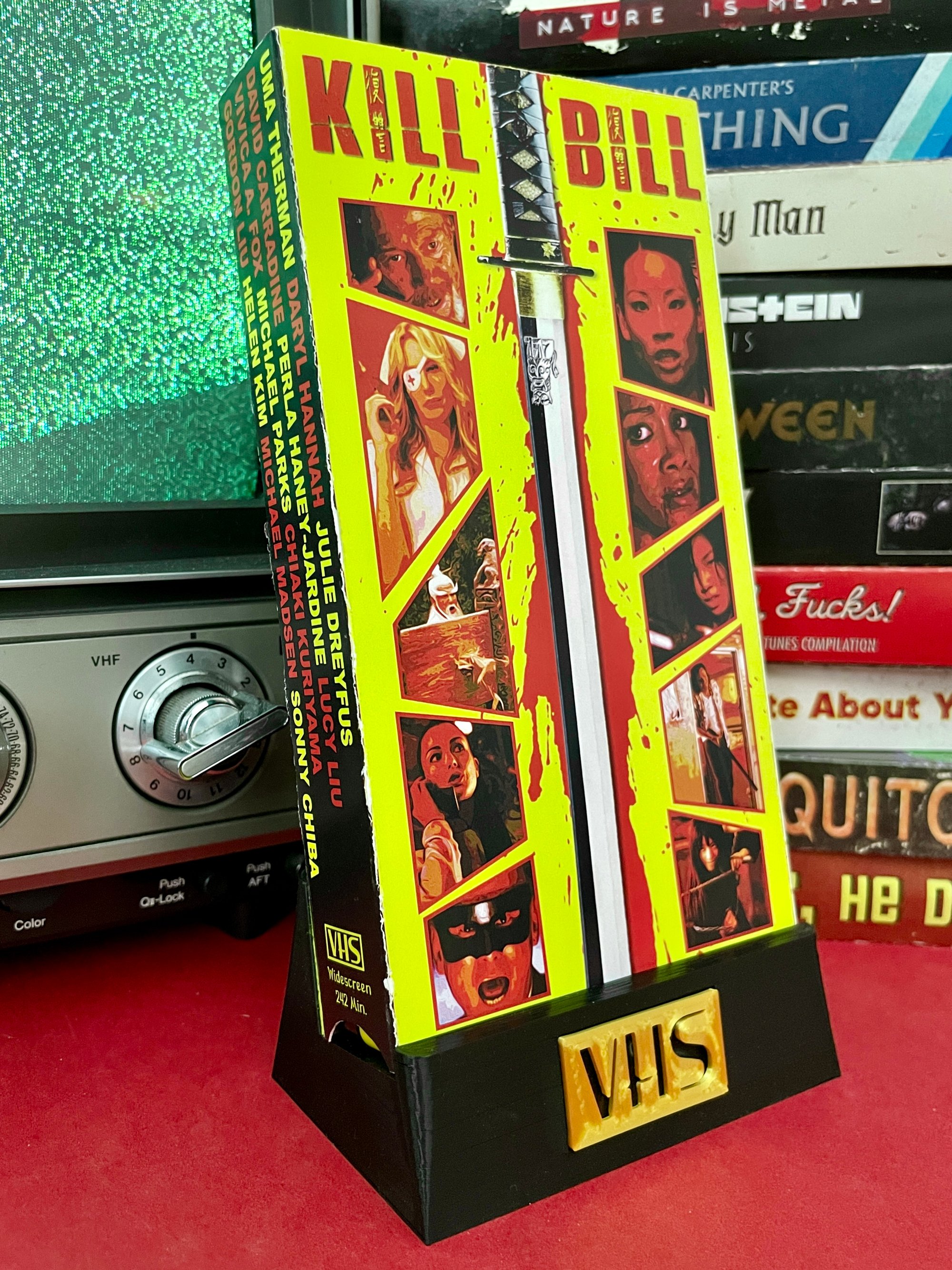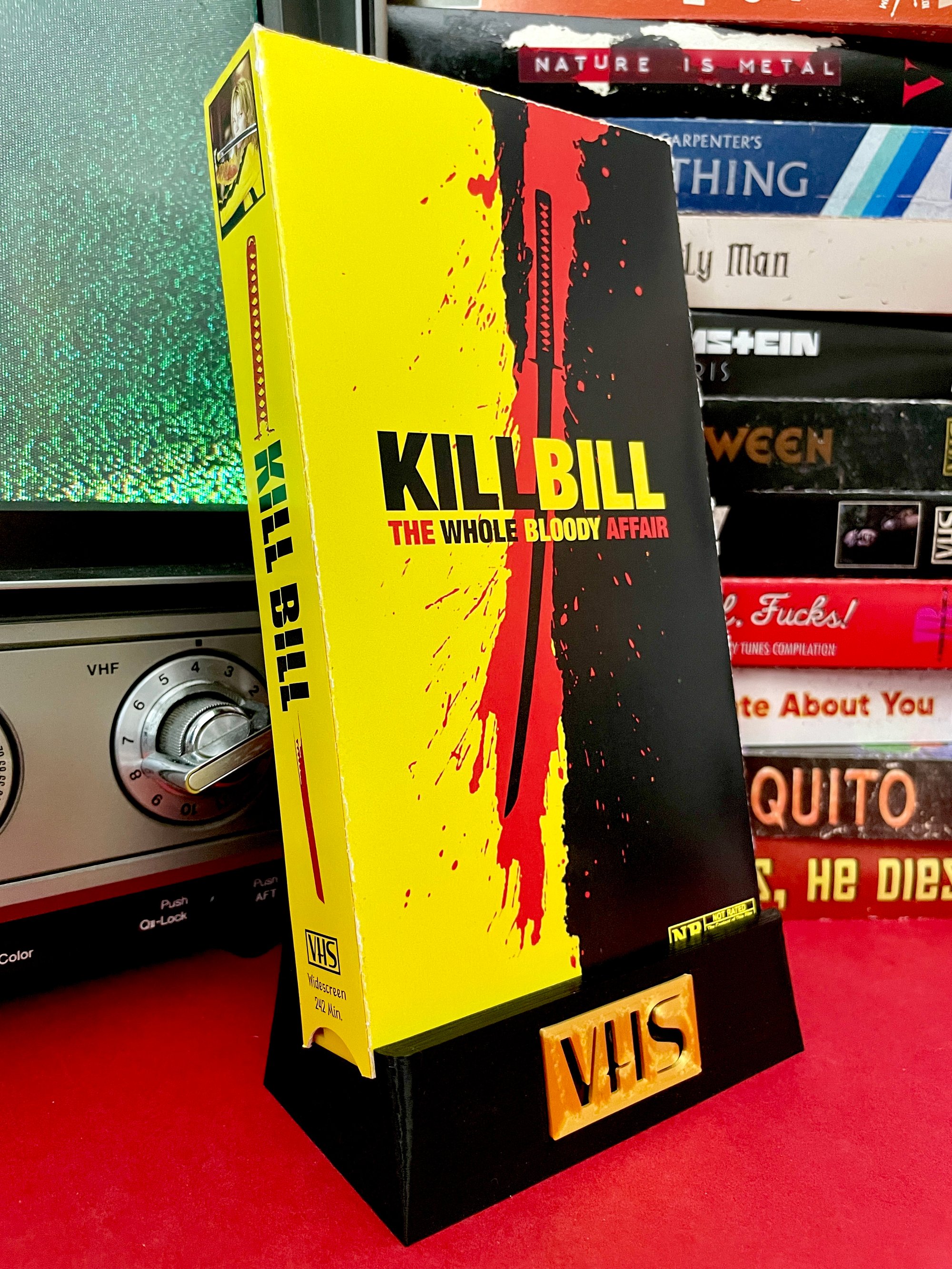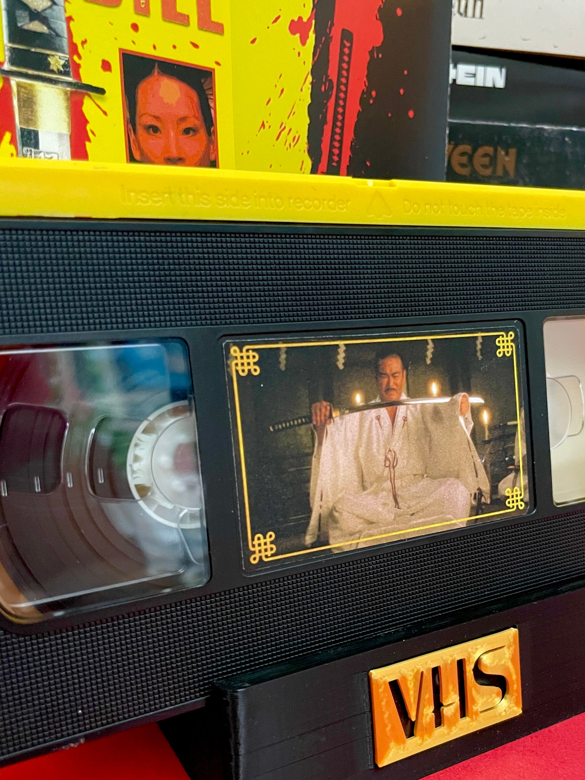 This is a fully-functional VHS with a custom-made sleeve and labels! I design the covers like a digital collage with details for fans to catch. Then cut, score, fold, and assemble the boxes individually by hand. Media is presented in 16x9 and recorded in SLP Mode. Default cassette color is black.